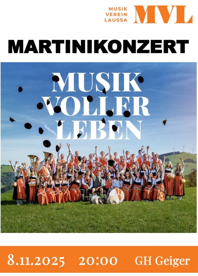 Der Musikverein Laussa lädt am 09. November um 20 Uhr wieder zum alljährlichen Konzert ins Gasthaus zum Geiger ein – dieses Mal unter dem neuen Namen „Martinikonzert“.